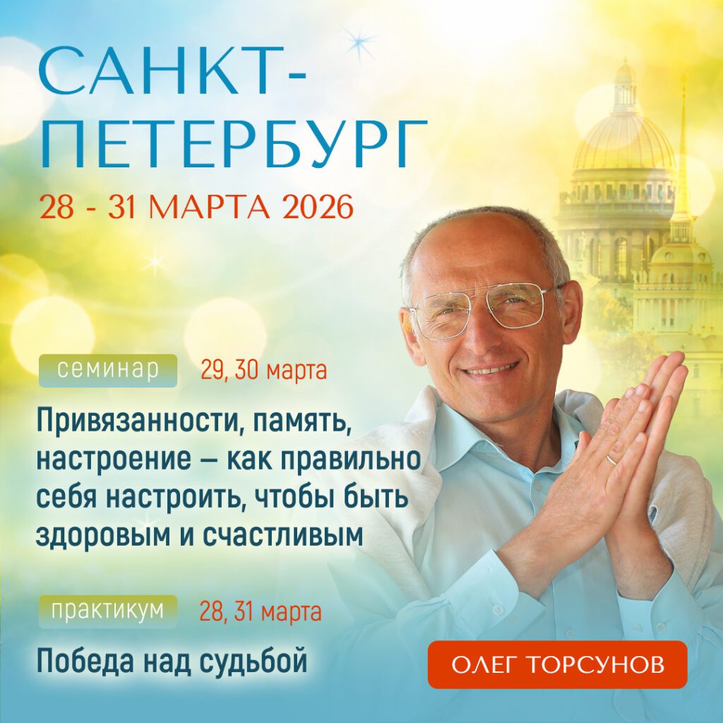 Вашему вниманию прямая трансляция семинара и практикума О.Г. Торсунова из Санкт-Петербурга: 🔹29-30 марта с 18:00 по мск — семинар «Привязанности, память, настроение — как правильно себя настроить, чтобы быть здоровым и счастливым«. Время начала и окончания трансляции может несколько меняться.…