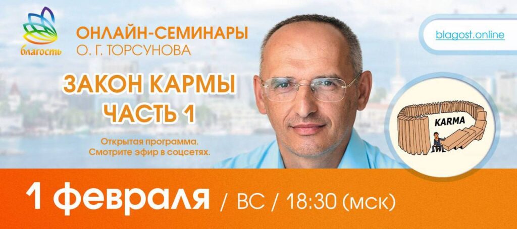 Приглашаем на открытый онлайн-семинар Олега Геннадьевича Торсунова «ЗАКОН КАРМЫ», ч.1